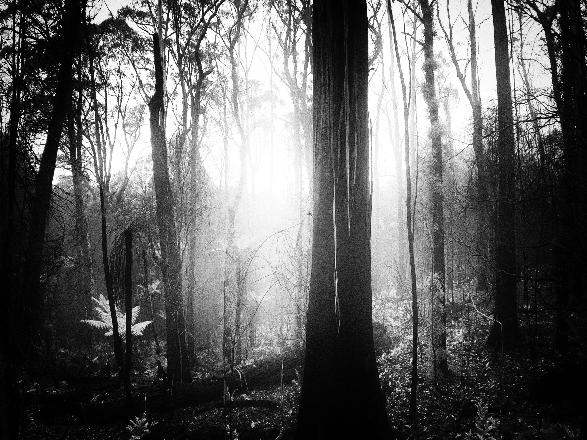 An area I have been to for photography many times. On this occasion, after a bushfire. Some regrowth can be seen on the trees and patches on the rocks show where moss and lichen has been burnt off. This image taken with the iPhone 8 plus.