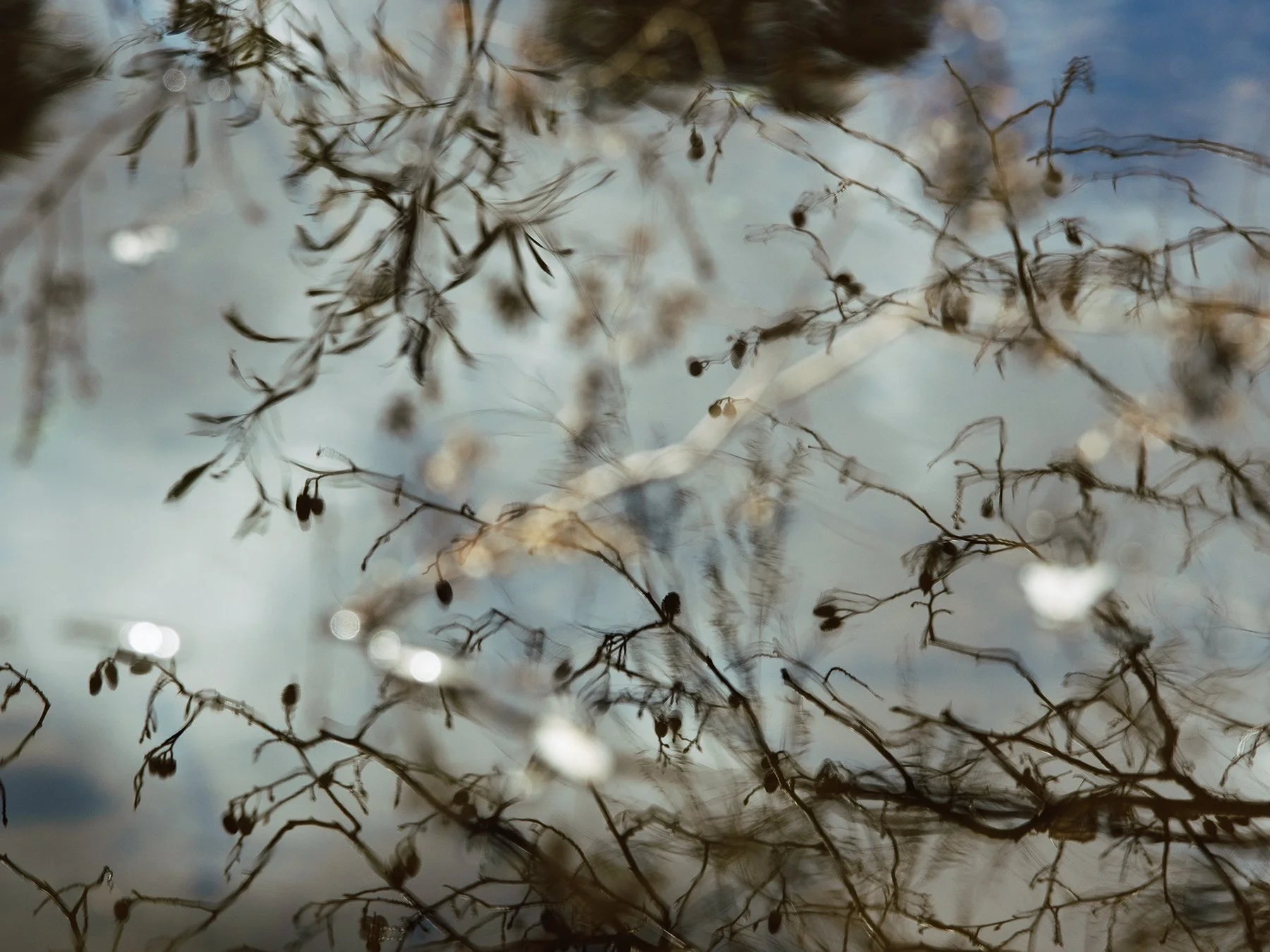 If you look closely, nothing much is in focus. There is a slight illusion of sharpness in the fine branches. But photography takes on a more artistic character. The background blend of green and blues of the creek - super blurry gives the whole image a soft feel.