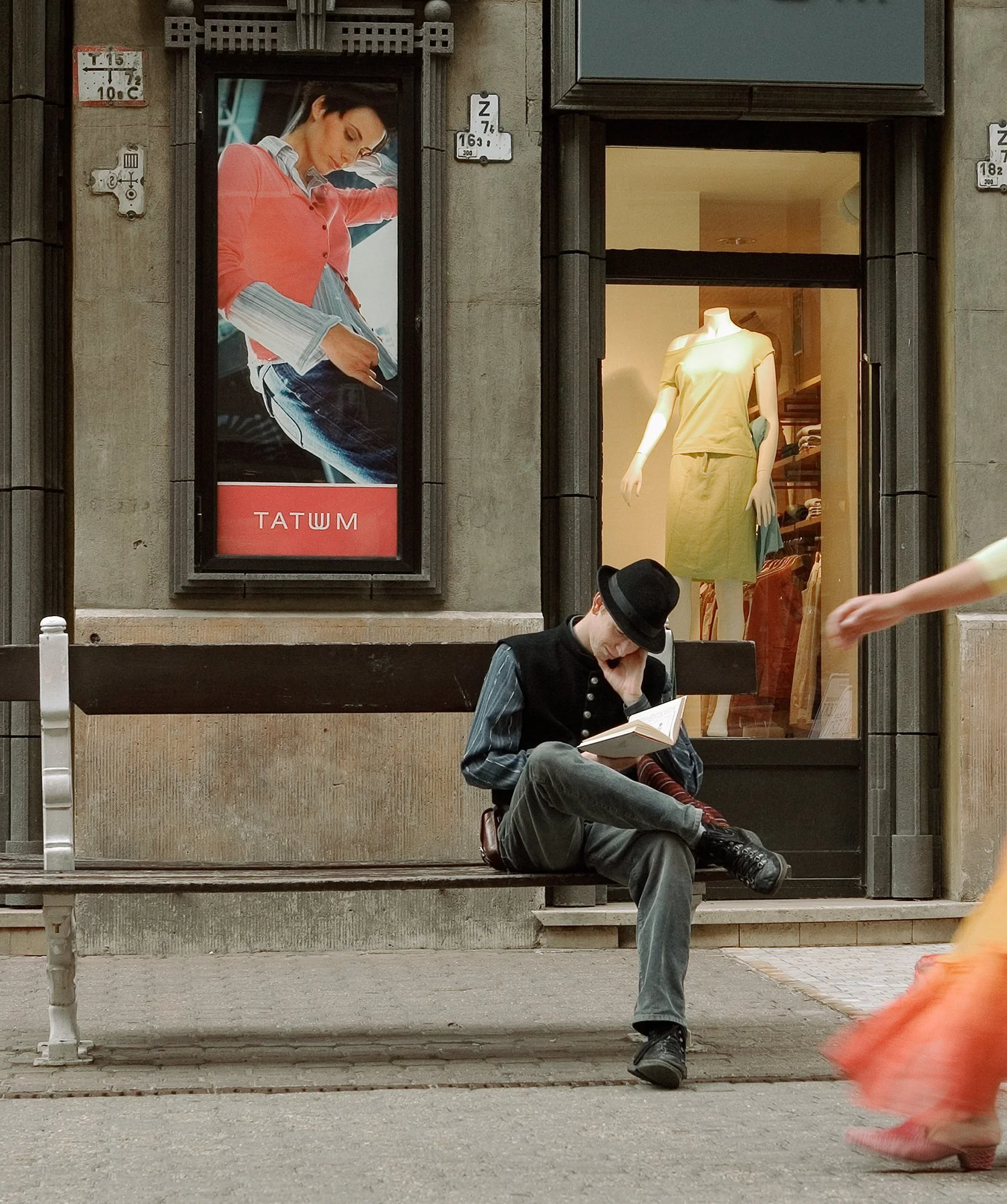 Man reads his book. Fashion locale in Budapest.
